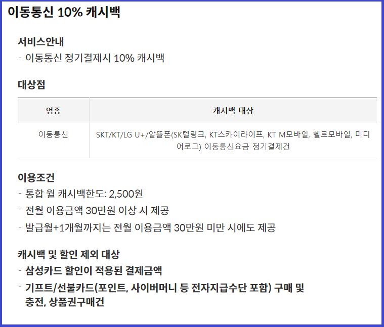 - 이동통신요금 / 커피전문점 / 편의점 5% 캐시백